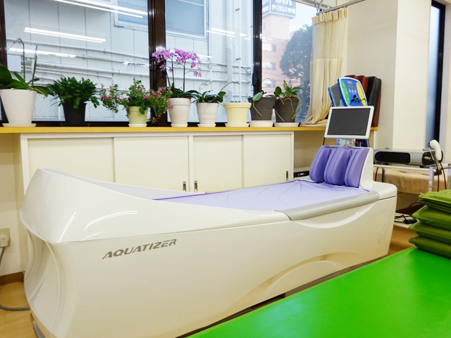 当院では、患者様の好みにこたえる多彩なウォーターマッサージベッド「アクアタイザー[QZ-260SG]」を導入しました。筋肉の柔軟性を向上させることや、きめ細かなマッサージを実現します。「さする」「こねる」「もむ」「おす」「たたく」「なでる」「のばす」など、幅広いマッサージが可能です。
